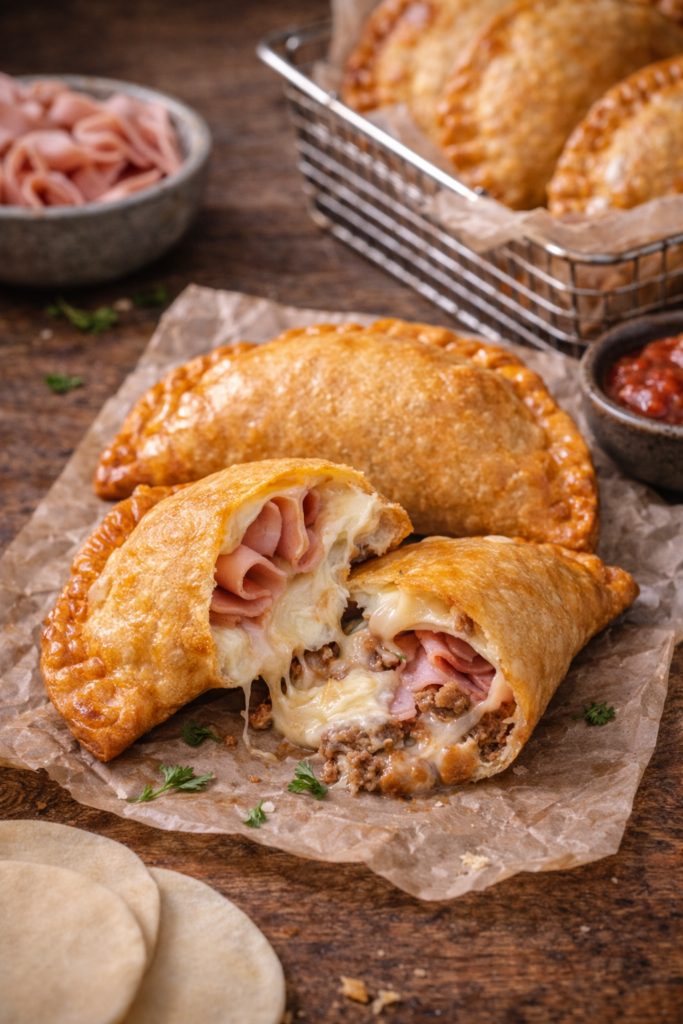 Relleno a elegir: carne molida, jamón y queso o pollo.